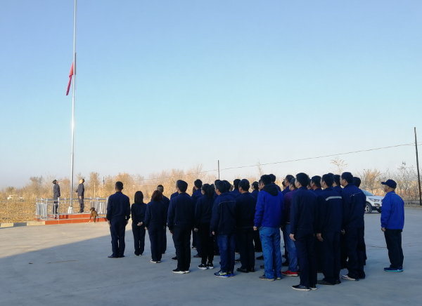 11月5日上午9:40,準東供水公司基地全體干部職工整齊列隊,在職工文體活動中心樓前組織升國旗儀式。在莊嚴的國歌聲中,國旗緩緩升起,全體員工肅穆行禮。